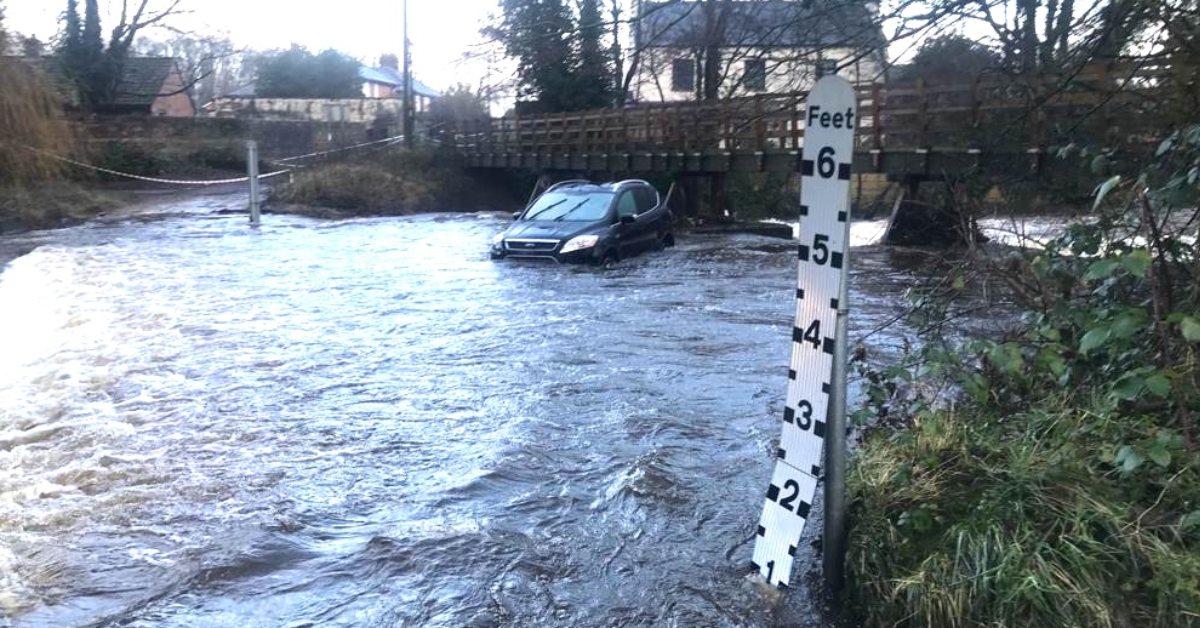 Its incident report said a single vehicle had become stuck in floodwater after attempting to cross the ford.