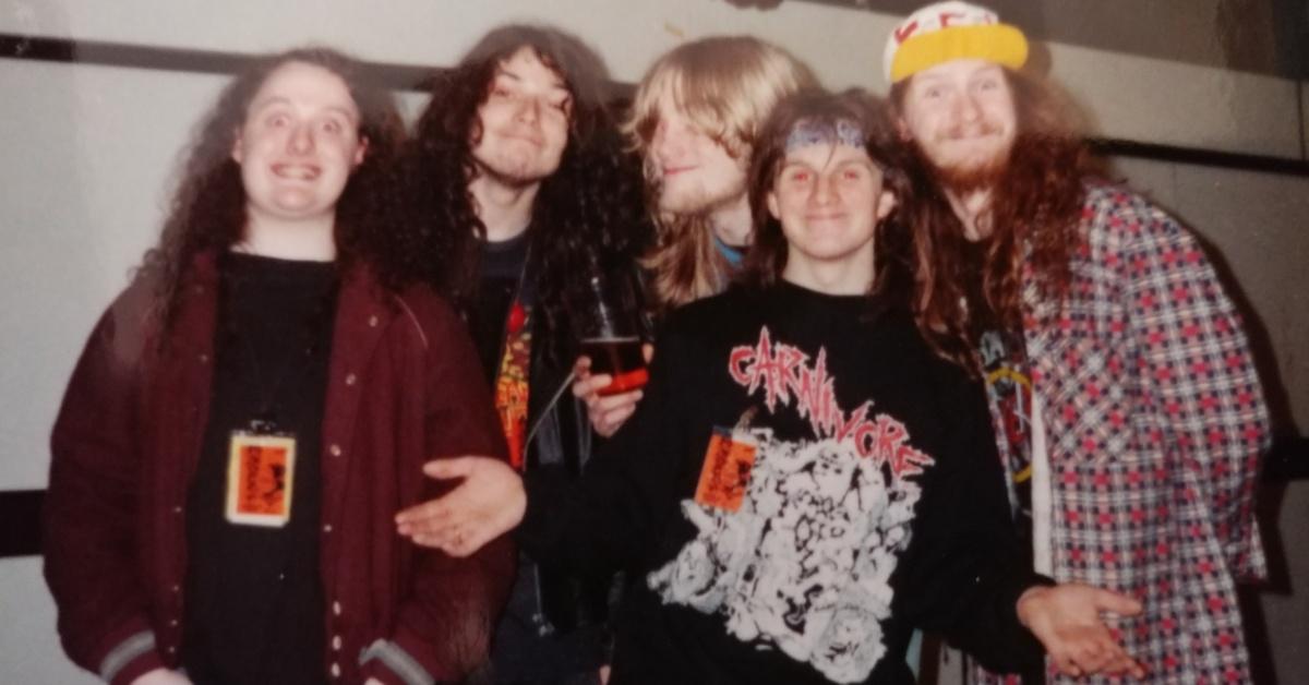 Members of the original Acid Reign line-up, formed at Granby High School: Mark Wharton, Adam Lehan, Ian MacDonald, Howard Smith and Kev Papworth
