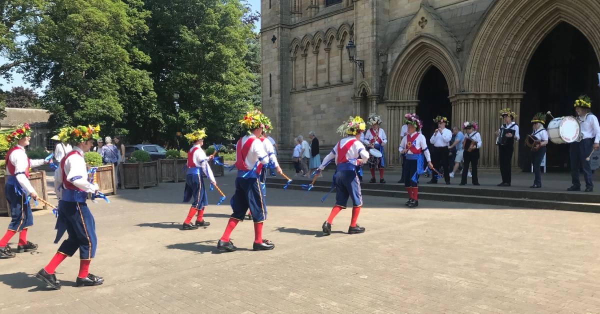 Just a hop and a skip away at the cathedral, Ripon City Morris Dancers  attracted a large gathering as did dancers of a different kind when Sarita McDermott and her team of Bollywood-style performers, Bethany, Matthew and Martin, from Jennyruth Workshops, performed in Spa Gardens.