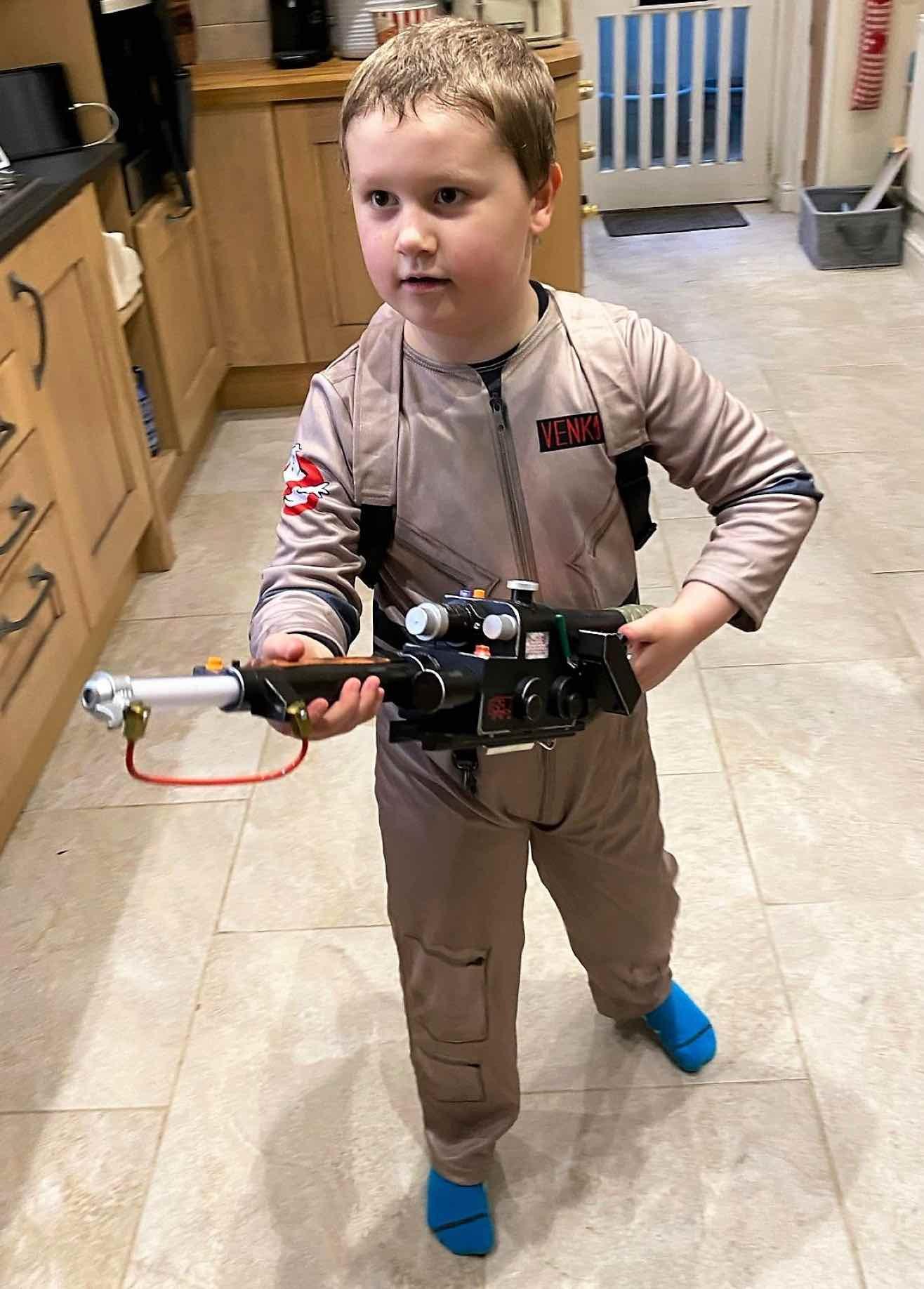 George Hutchins dressed as a ghostbuster