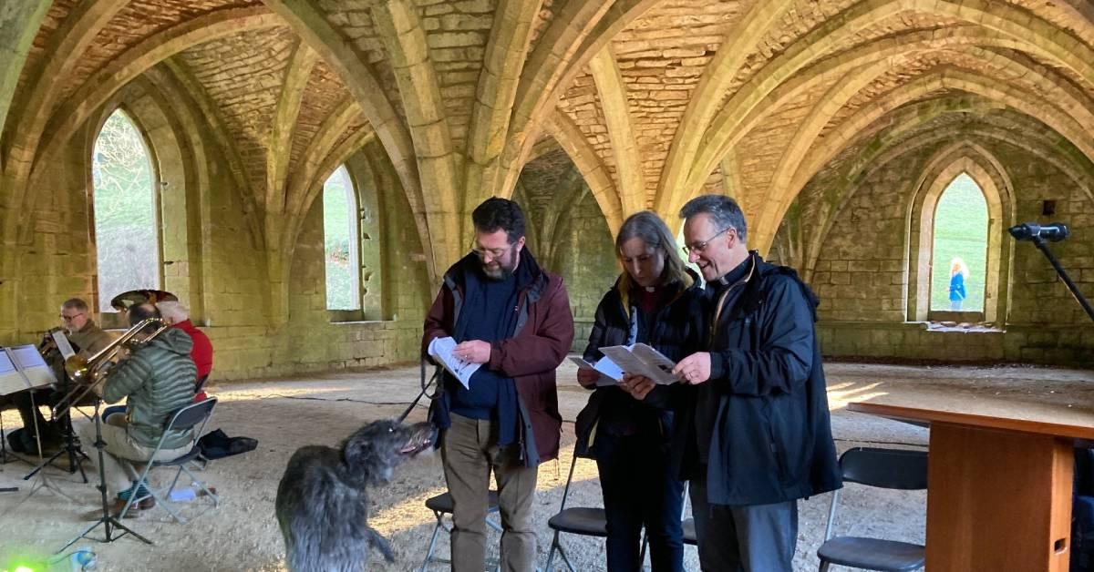 The pilgrimage concluded with a carol service in the awe-inspiring vaulted cellarium of the ruined abbey. Musical accompaniment was provided by the Harrogate-based quintet Stray Brass.