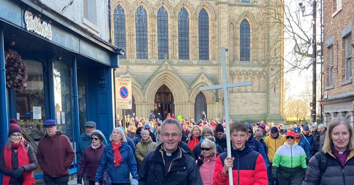 It was the perfect day for a pilgrimage and hundreds turned up at Ripon Cathedral this morning to take part in the four-mile walk of faith to Fountains Abbey.