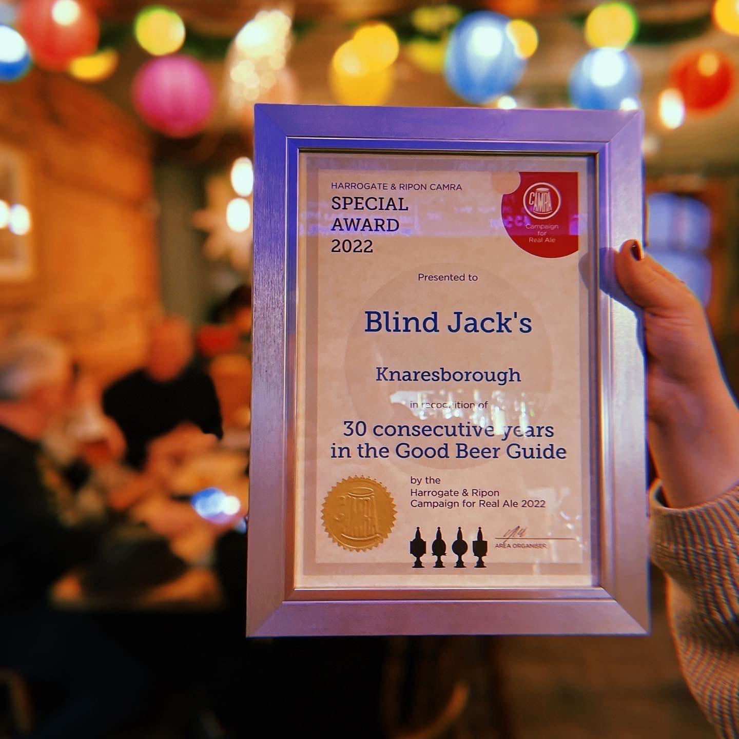 Blind Jack's is believed to be the only pub in the Harrogate district to feature in the Good Beer Guide continuously for 30 years.