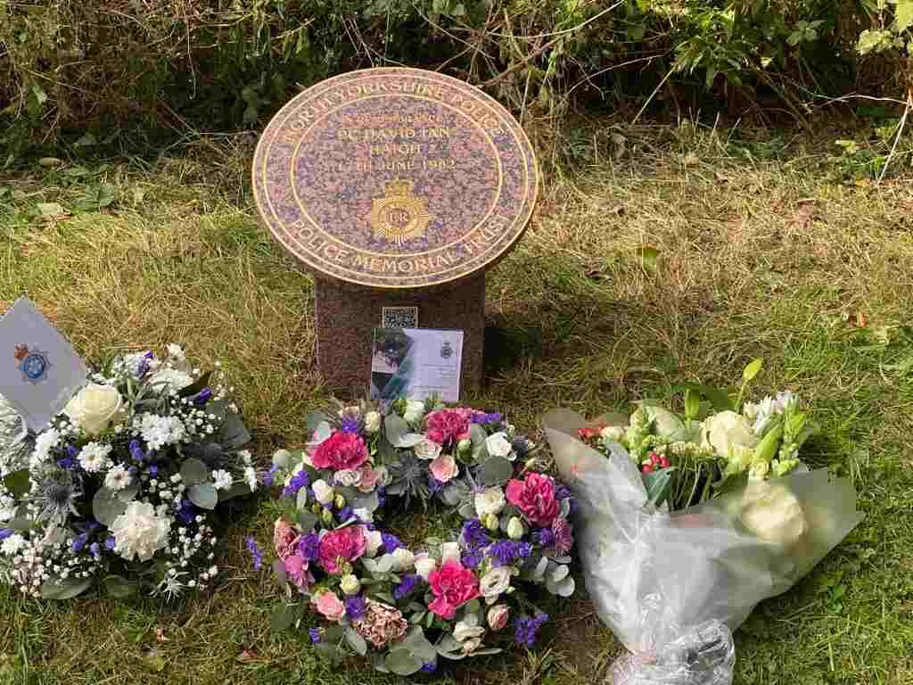 A memorial stone was unveiled this morning in honour of Harrogate police officer David Haigh, who was murdered on duty in 1982.