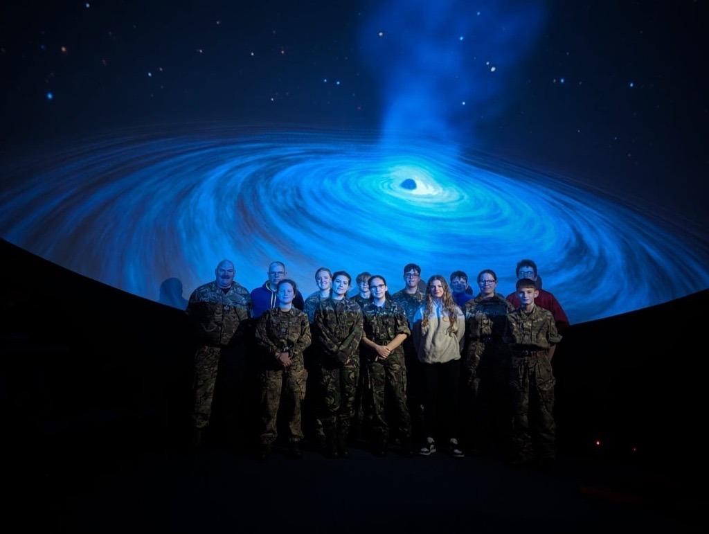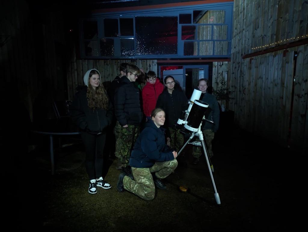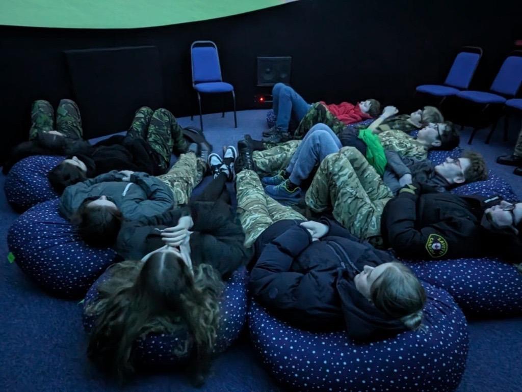 The cadets' knowledge was impressive, or perhaps mine was awful, as they answered many of the questions posed during the presentation before heading outside to look through the telescopes. We visited on the day Storm Isha was passing and had to wait for gaps in the banks of cloud but the clarity of Jupiter through the lens drew gasps.