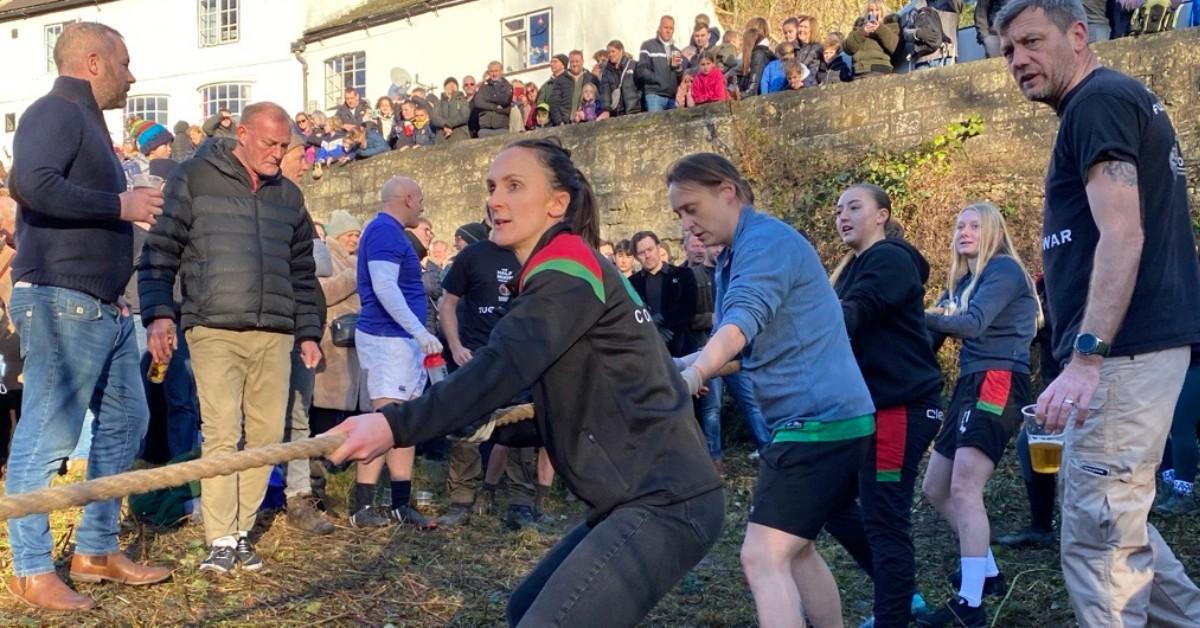 Teams representing the Half Moon Free House and the neighbouring Mother Shipton Inn take part in the festive fun annually at Low Bridge. Lining up on opposite river banks, they try to pull each other towards the water's edge.