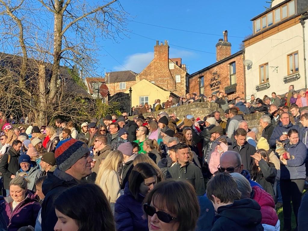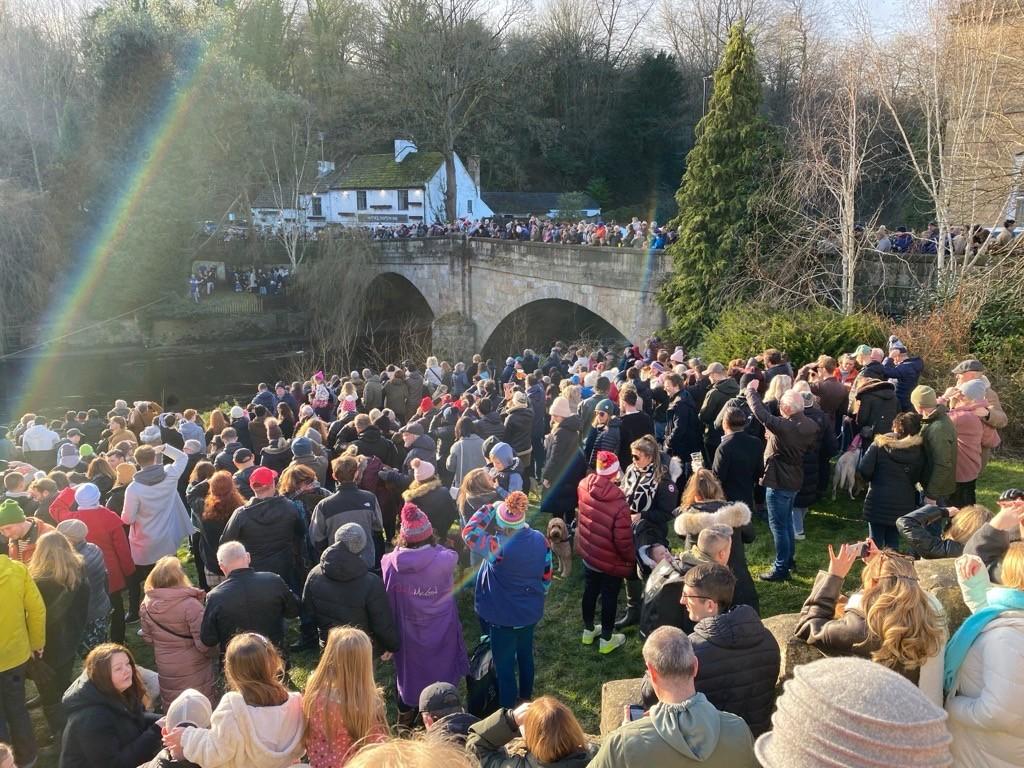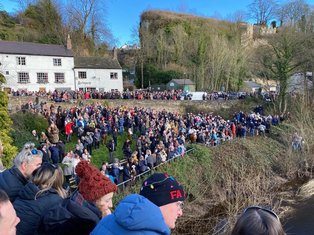 Hundreds of people lined the banks of the Nidd and Low Bridge.
