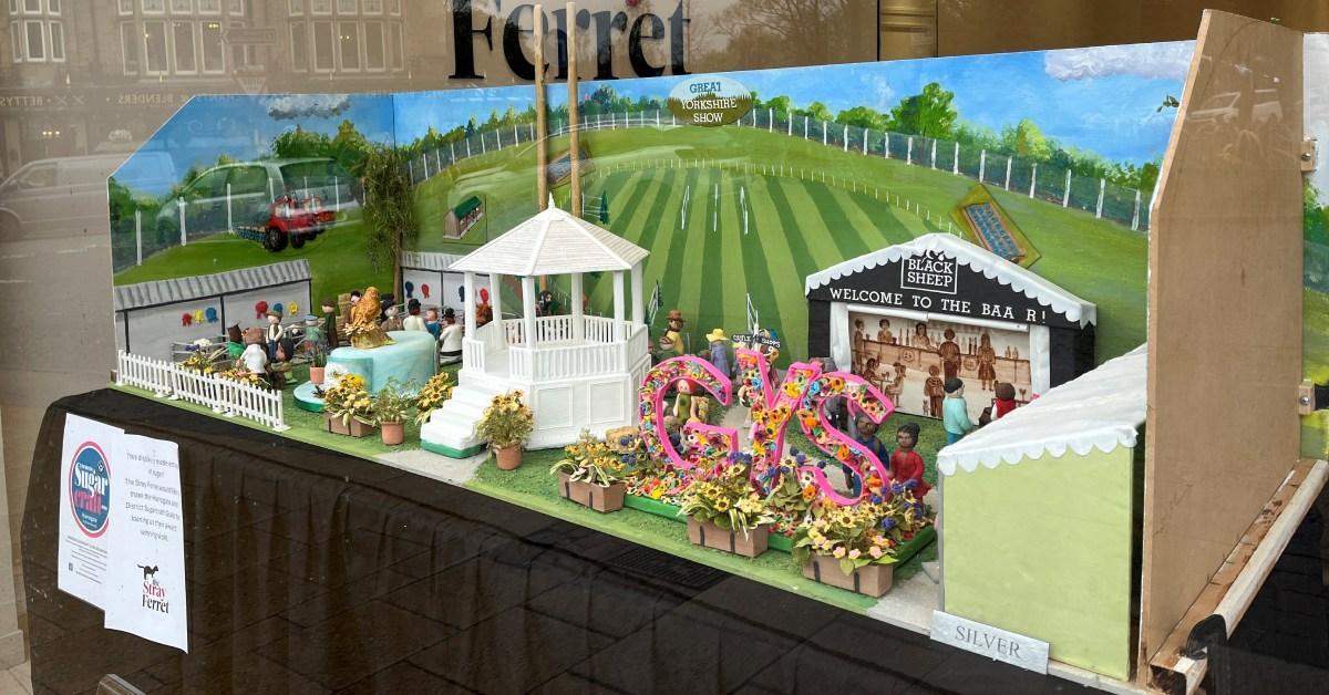 The sugarcraft display of the Great Yorkshire Show in The Stray Ferret window