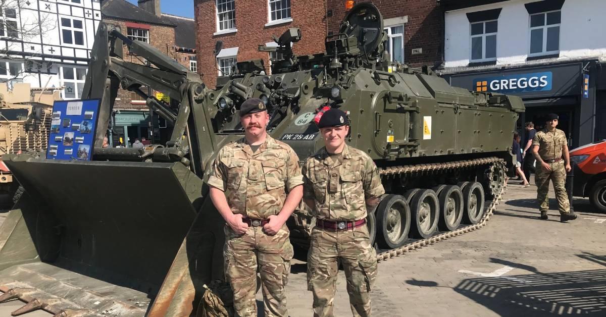 Our main picture shows Lance Corporal Adam Smith (left) and Corporal John Rogers in front of a Mastiff Mk III armoured vehicle used for force protection.