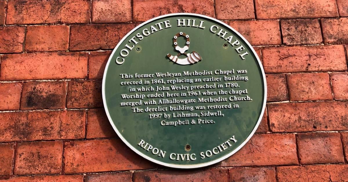 The former chapel was awarded a green plaque by Ripon Civic Society in recognition of its heritage status.