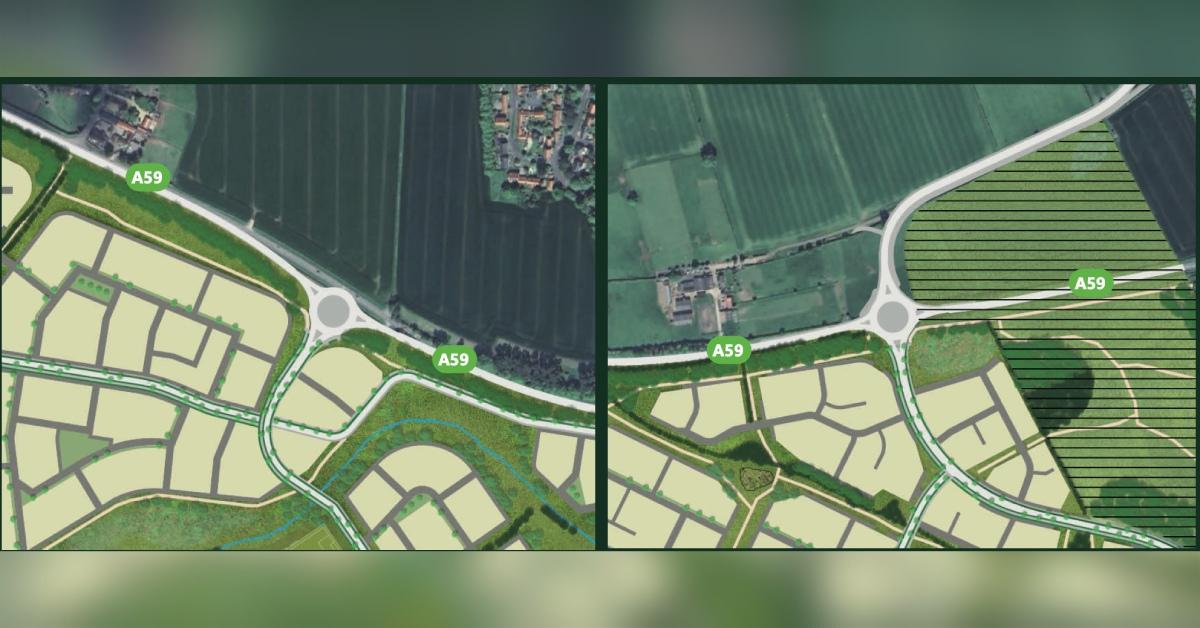 The two roundabouts proposed to access the site have also been moved, with one on the east and one on the west of the site along the A59.