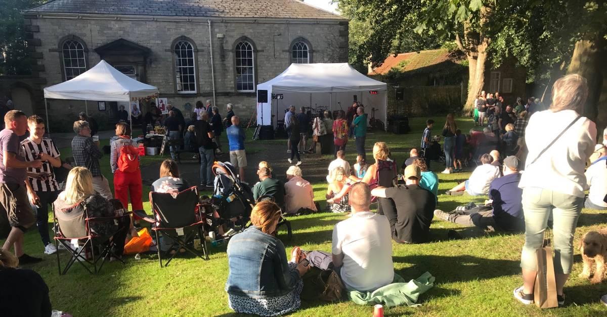 Concert-goers gather at Minster Gardens