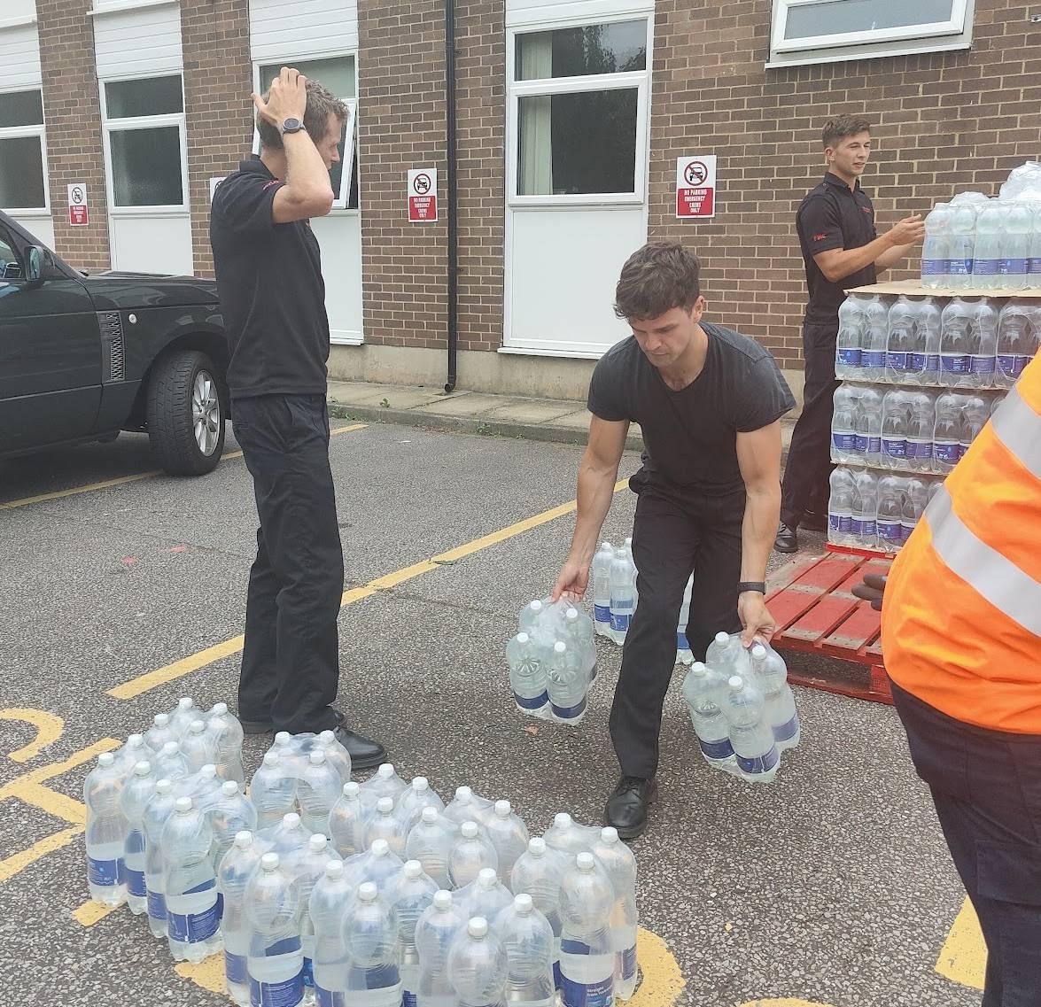 Yorkshire Water set up an emergency bottled water station at Ripon fire station for thirsty residents, which had a steady stream of people in cars coming to pick up bottles of H2O, helped by on shift firefighters.
