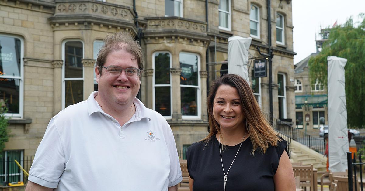 Andrew Robson, senior communications and marketing executive and Louise Stewart, property director at the Inn Collection Group outside the Harrogate Inn.