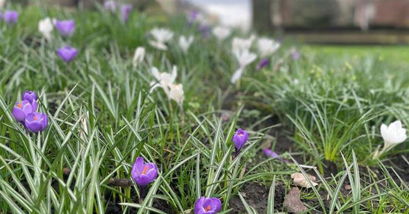 Planting species like campanula and violas will provide the benefit of being winter hardy, and they flower generously throughout spring, covering ground effectively once established. Primroses will also continue to flower for the coming months and can add a well needed pop of colour.
