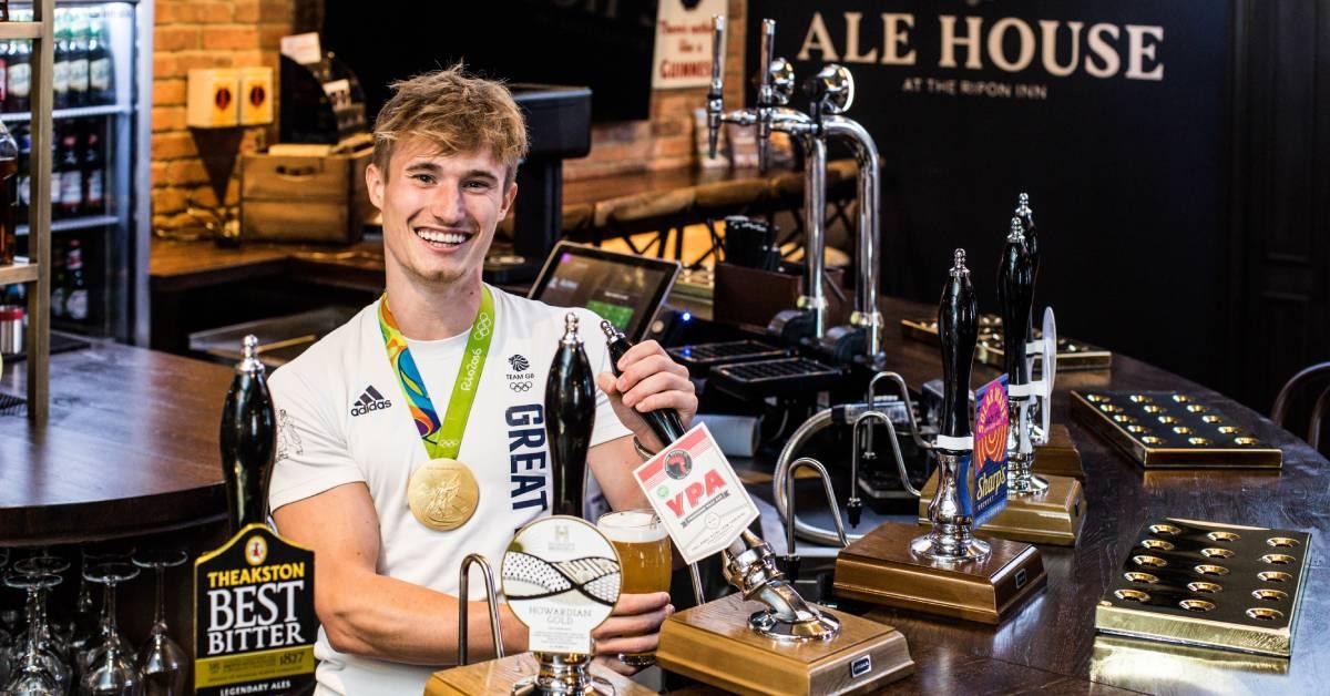 Jack Laugher pulls a pint at the VIP preview event last week.