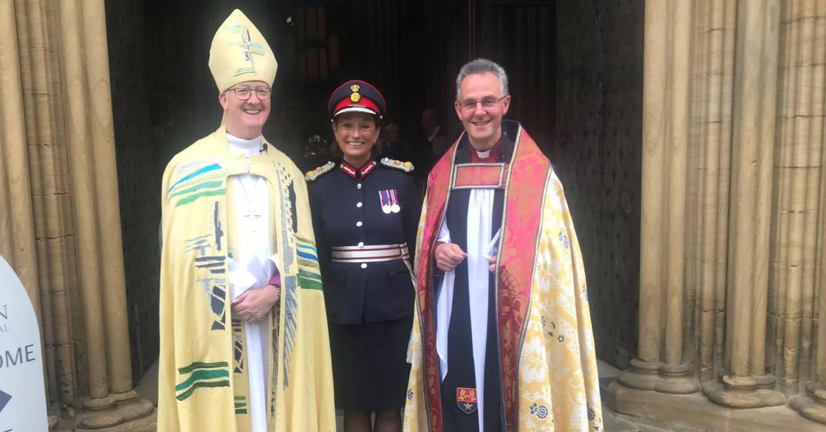 The Lord Lieutenant of North Yorkshire Ms Johanna Ropner, pictured following yesterday's service with the Bishop of Leeds the Rt Revd Nick Baines and the Dean of Ripon the Very Revd John Dobson.
